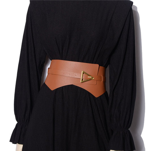 Faux Leather PU Women's Waist Belt Faux Leather Triangle Buckle Wide Girdle