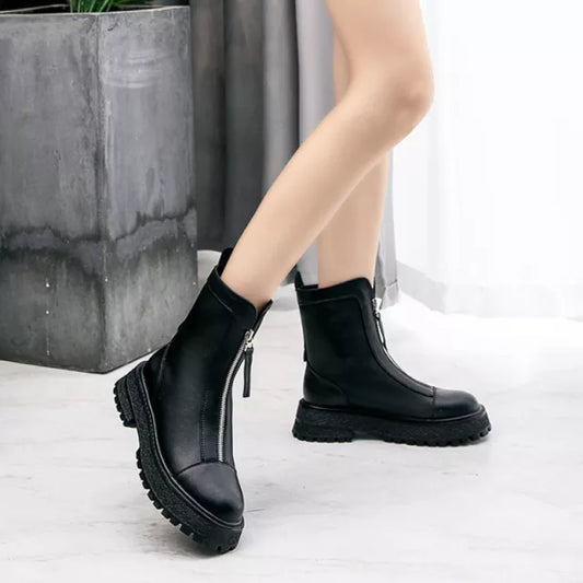 Autumn Winter Split Leather Women Ankle Boots Shoes Thick Bottom
