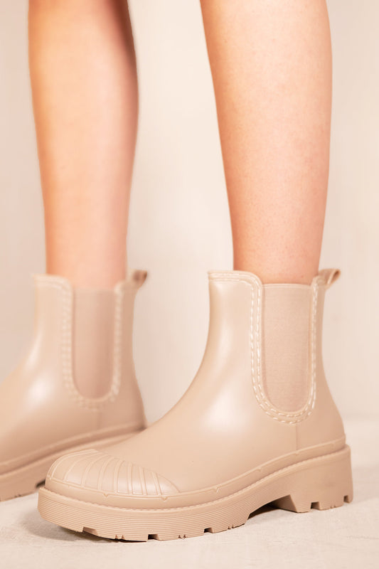 ZOALA FLATFORM PULL ON WELLIE BOOT IN BEIGE