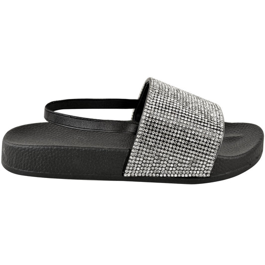 LEVELLE KIDS FLATFORM SLIDERS WIT DIAMANTE STRAP & SLINGBACK IN BLACK