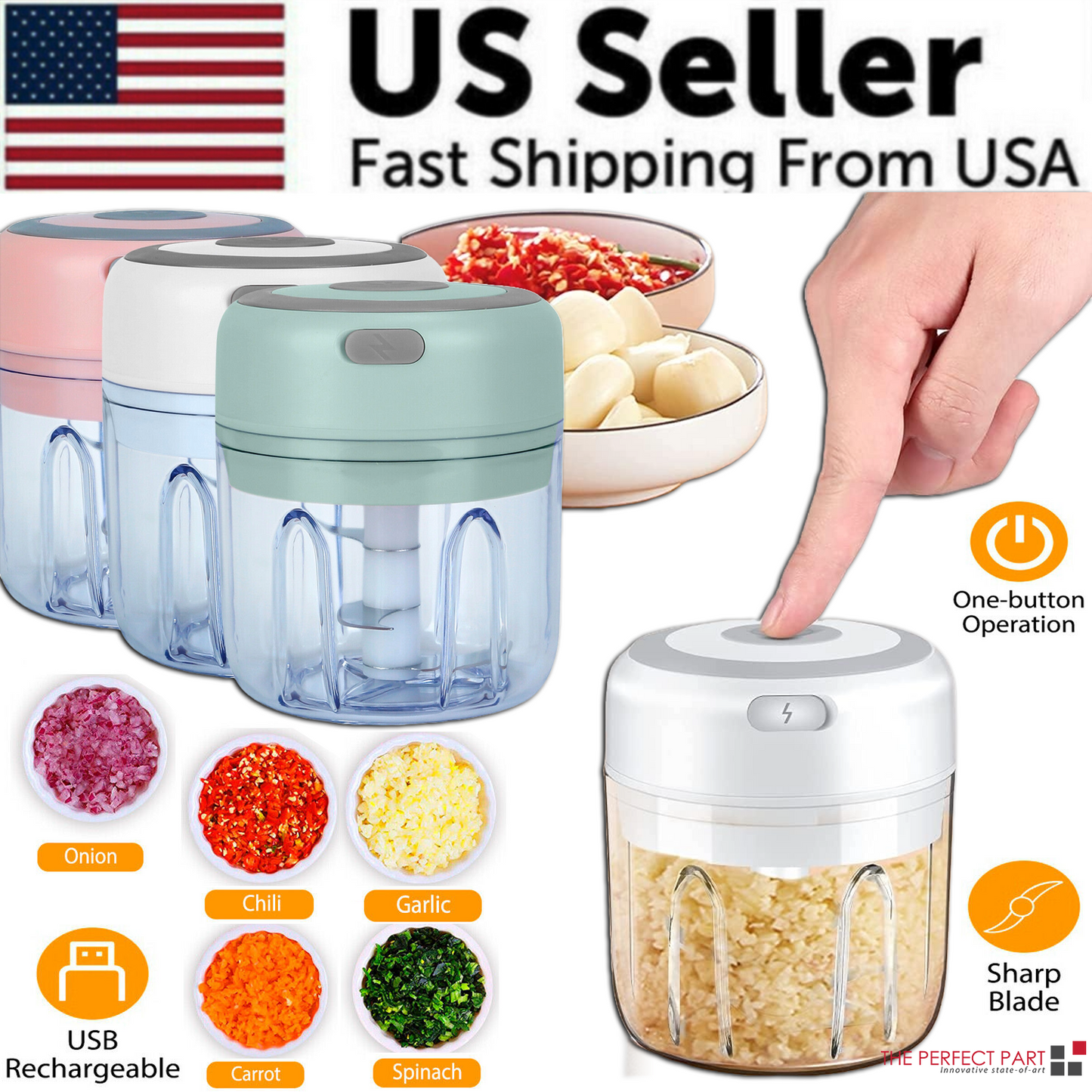 Electric 300ML Garlic Press Chopper Chili Onion Fruits Meat Mincer Blender Mixer