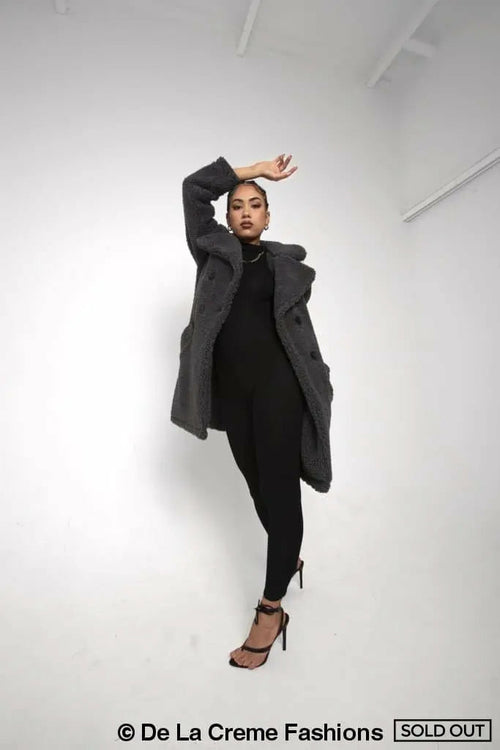Janine Double Breasted Borg Teddy Coat