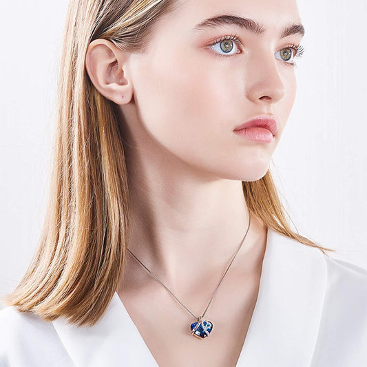 I LOVE YOU FOREVER Blue Crystal Heart Necklace & Gift Box in 18K Whit