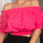 Azalea Pink Eyelet Off Shoulder Crop Top
