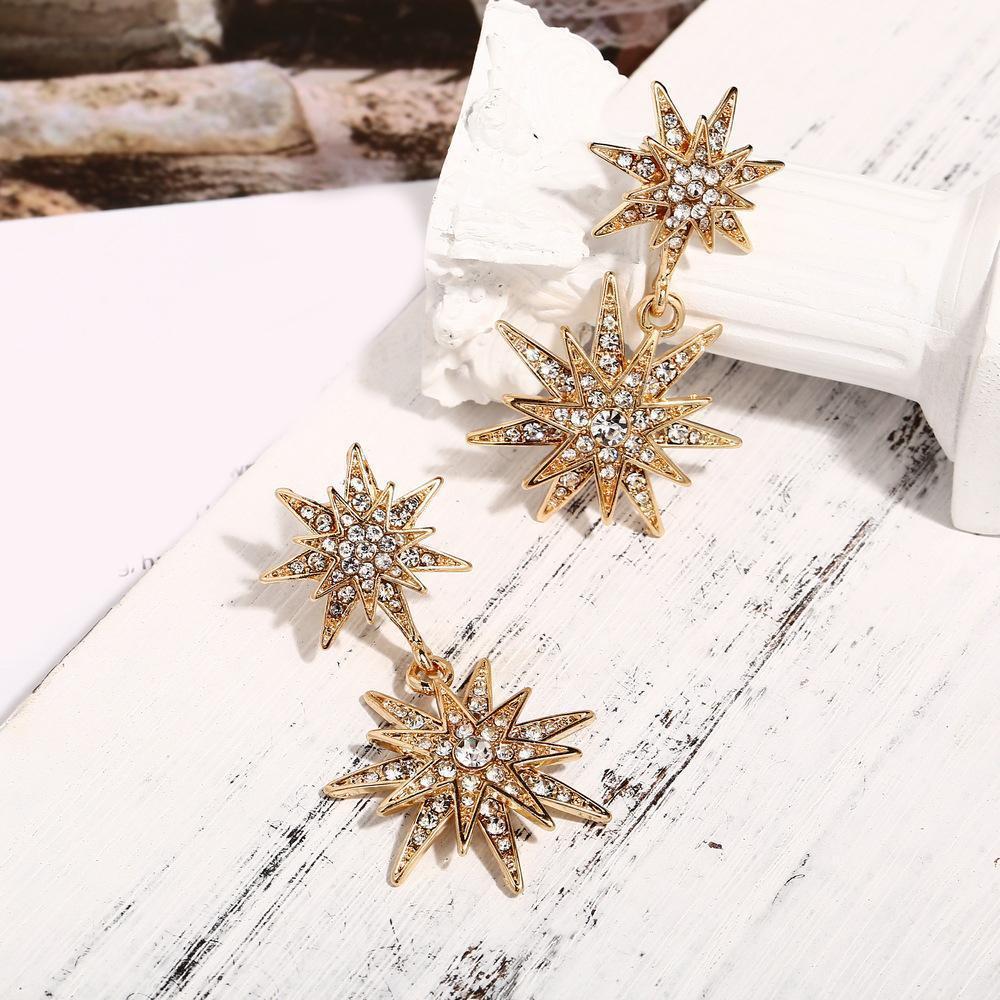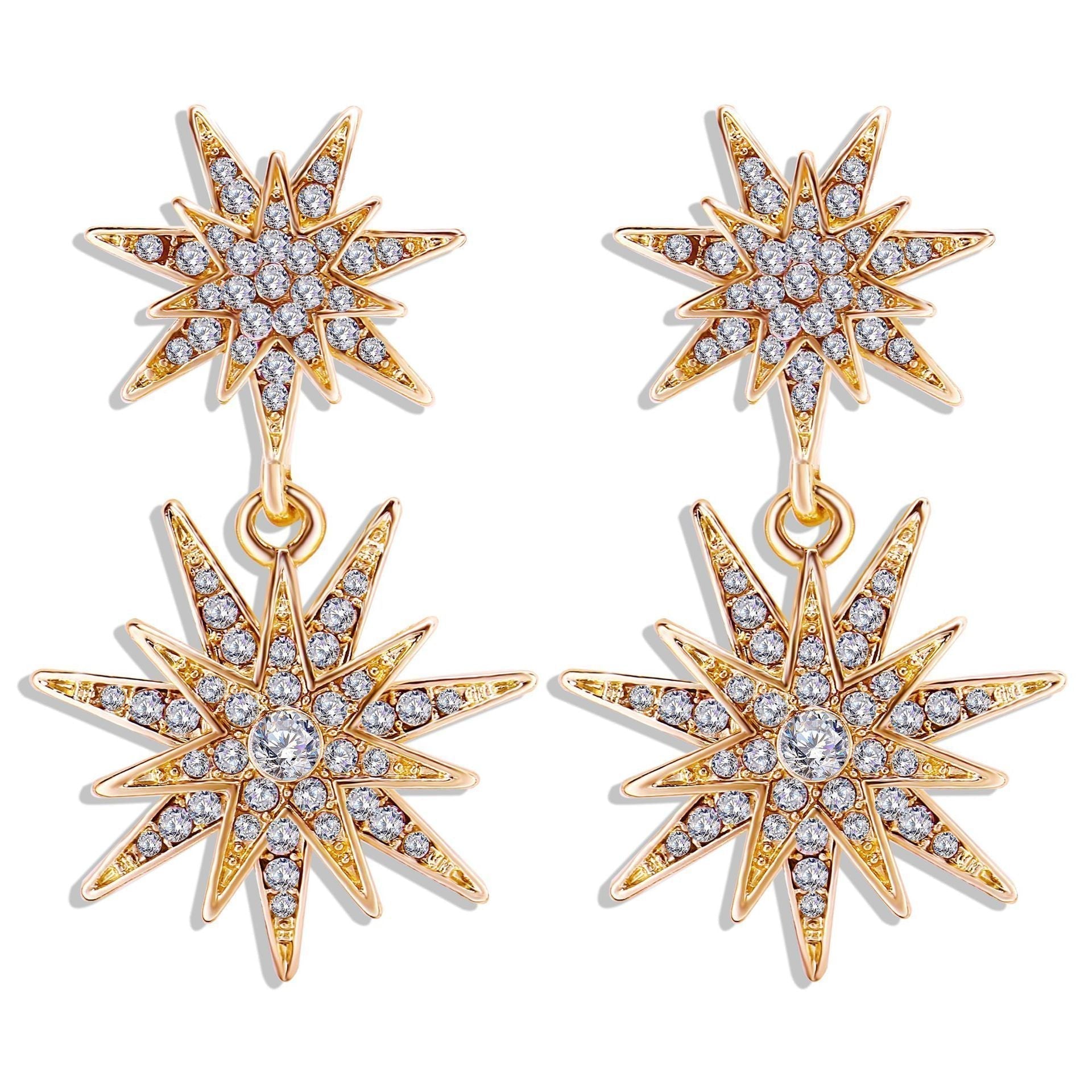Celestial Star Drop Earring With Gemstone Crystals 18K Gold Plated