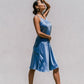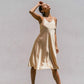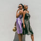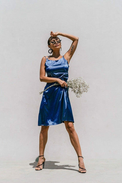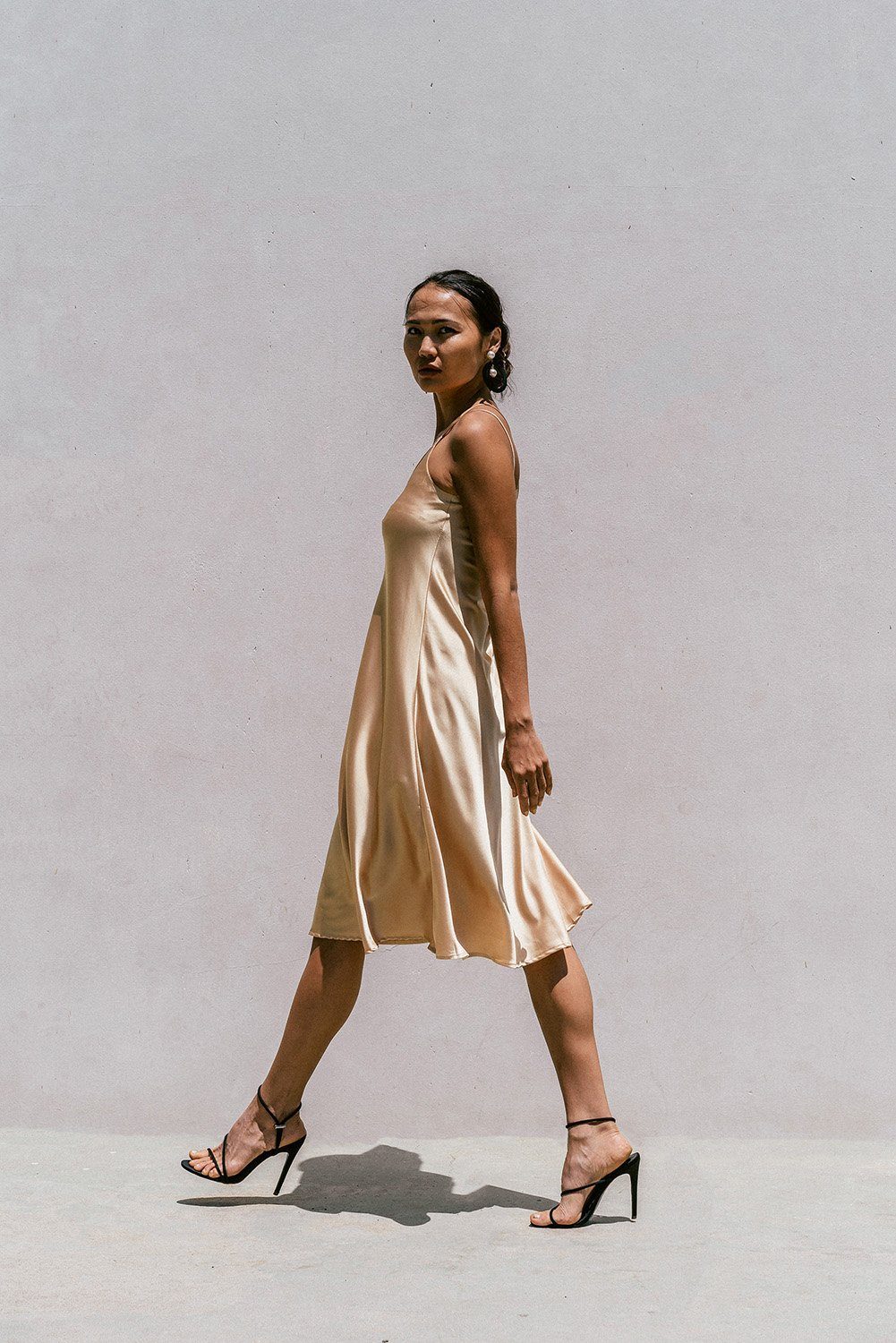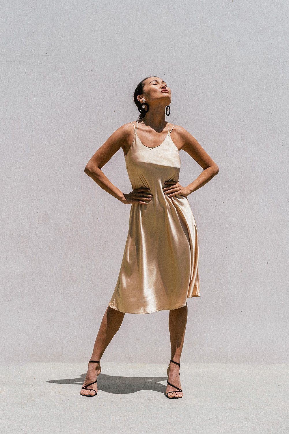 Silky smooth slip dress crafted in luxurious lightweight satin for those blissful summer days. Featuring a rounded neckline, delicate double straps, and super flattering A-shape silhouette. Available in more colors.