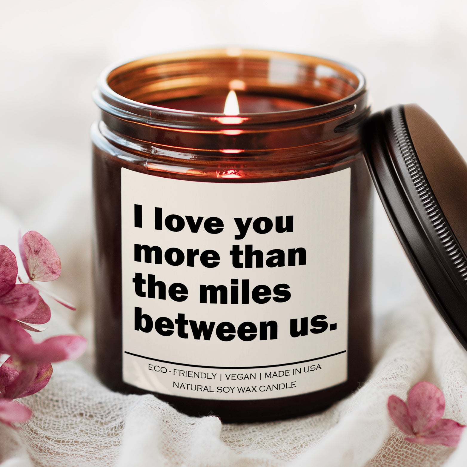 I love you more than the miles between us Candle