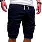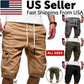 Men Casual Chino Cargo Shorts Elastic Waist Drawstring 6 Pockets Summer Trousers