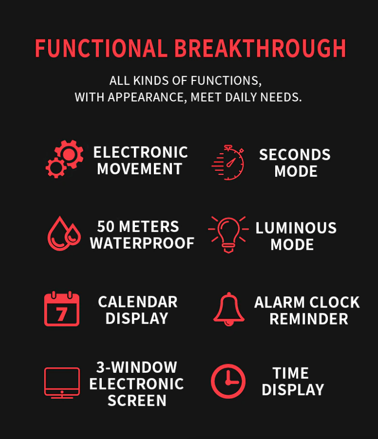• The mirror surface is transparent and wear-resistant, the three-dimensional multi-function dial, and the case is exquisite in production technology.