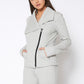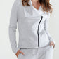 Women's Oversized Collar Zip-Up Moto Jacket In Heather Grey